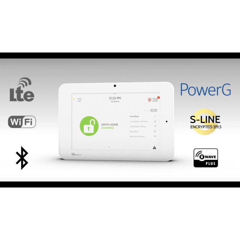 • The IQ Panel 2 Plus includes 7″ HD Touchscreen, a build-in 5MP camera and a new exclusive feature: Dual SRF featuring PowerG, the best wireless sensor protocol available. PowerG has 4x the range of traditional wireless, military grade 2-way encryption, automatic signal adjustment to improve battery life and ensure a reliable connection, and interference circumvention to ensure your signals never get blocked by other wireless protocols.