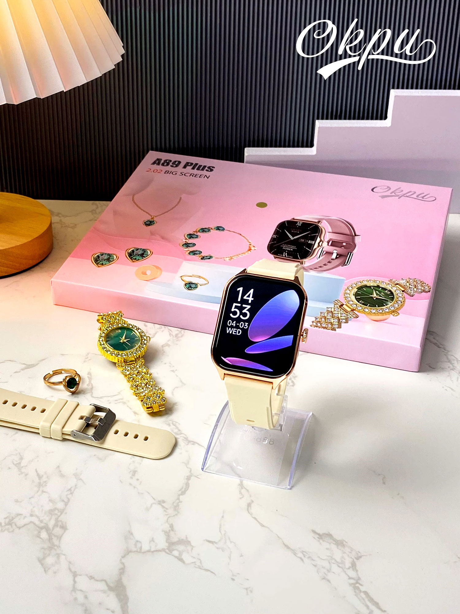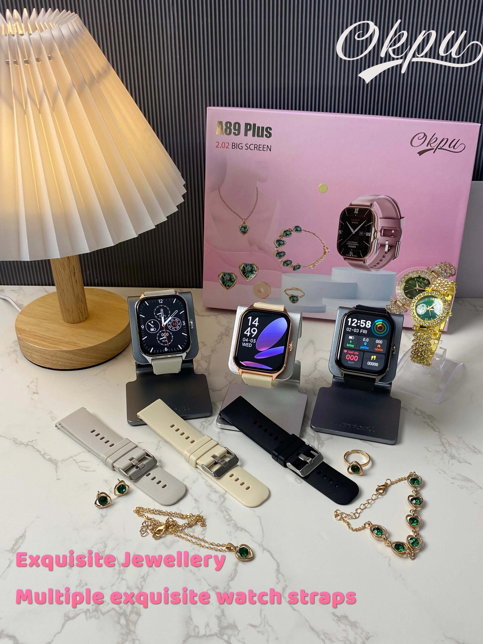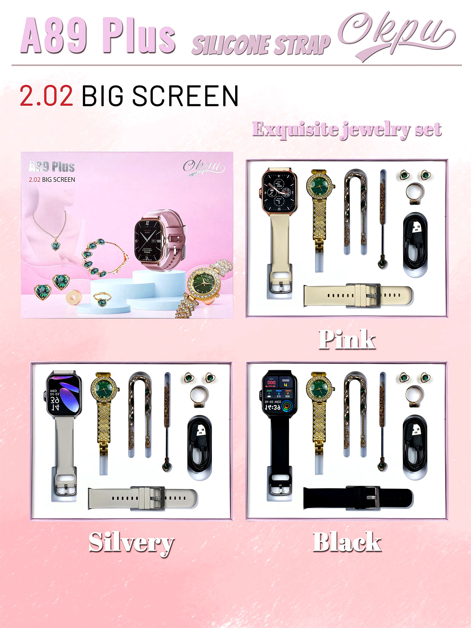 A89 Plus 2.02 Big Screen Smart watch 2024 Necklace Earrings Bracelet Ring