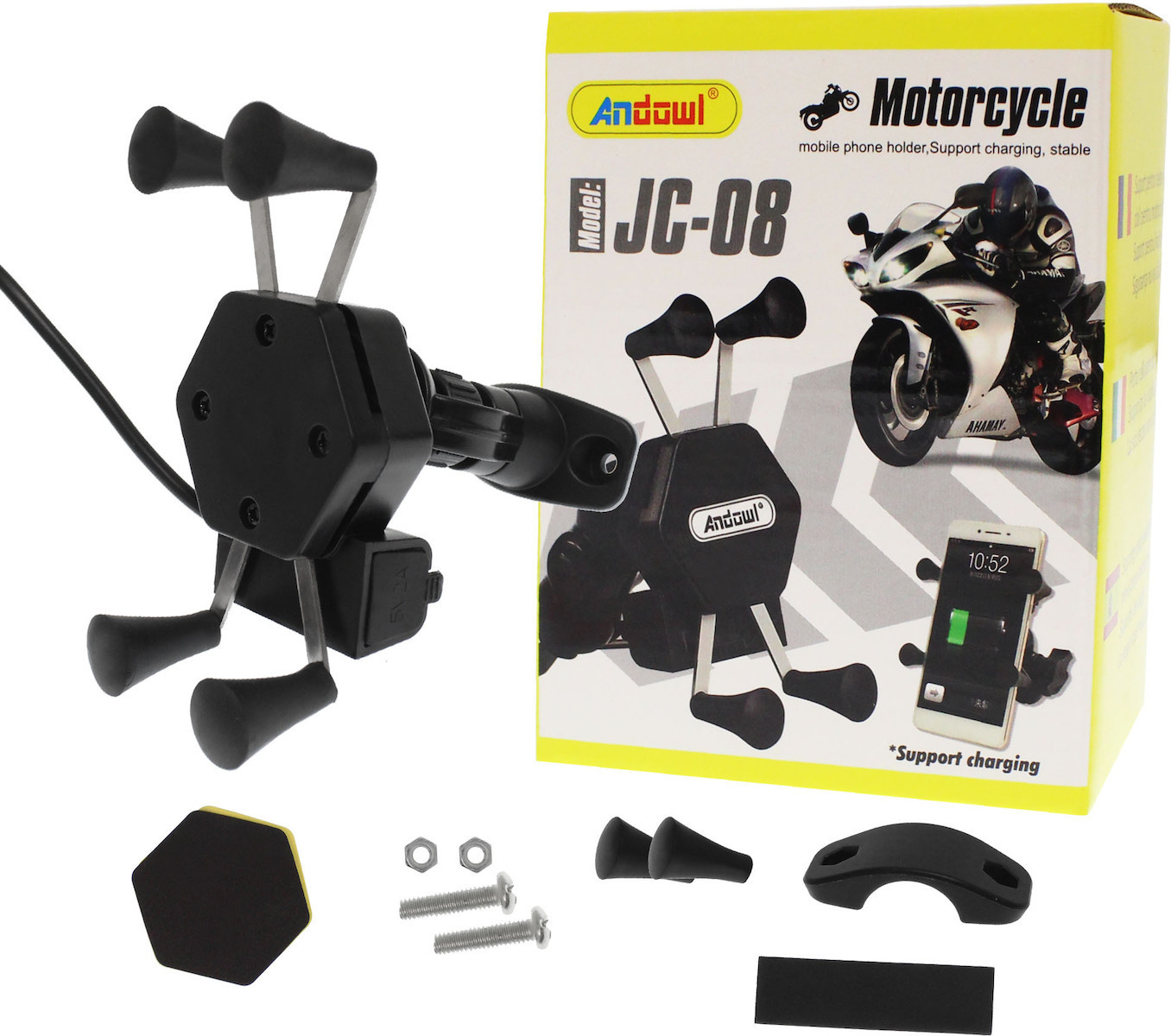 Andowl JC-08 Βάση Κινητού Μοτοσυκλέτας με Ρυθμιζόμενο Βραχίονα για το Τιμόνι και Φορτιστή
