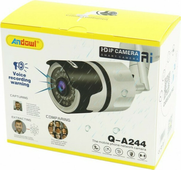 Η κάμερα ασφαλείας Q-A244 της Andowl είναι ψηφιακή (IP), συνδέεται στο δίκτυο σας ασύρματα μέσω Wi-Fi και έχει μεγάλο εύρος λήψης. Τέλος, είναι εφοδιασμένη με φώτα led υπερύθρων έτσι ώστε να είναι δυνατή η καταγραφή της εικόνας σε απόλυτο σκοτάδι.