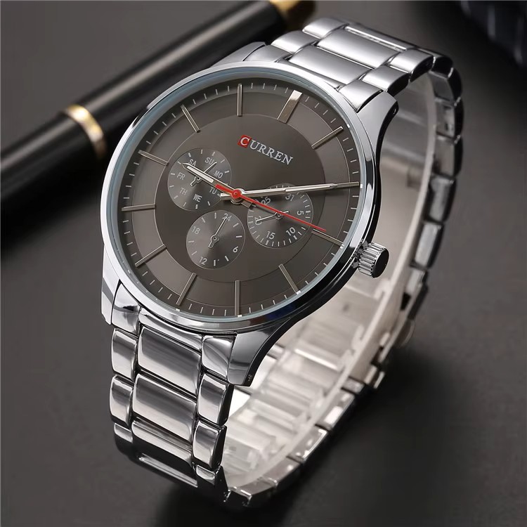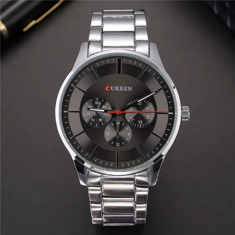 Curren 8282 Watch Chronograph Battery with Metal Bracelet Black / Silver