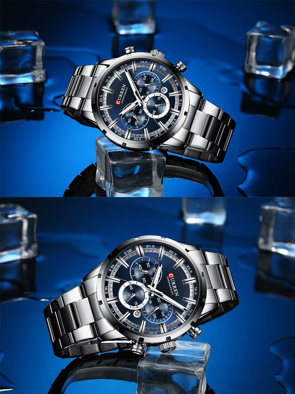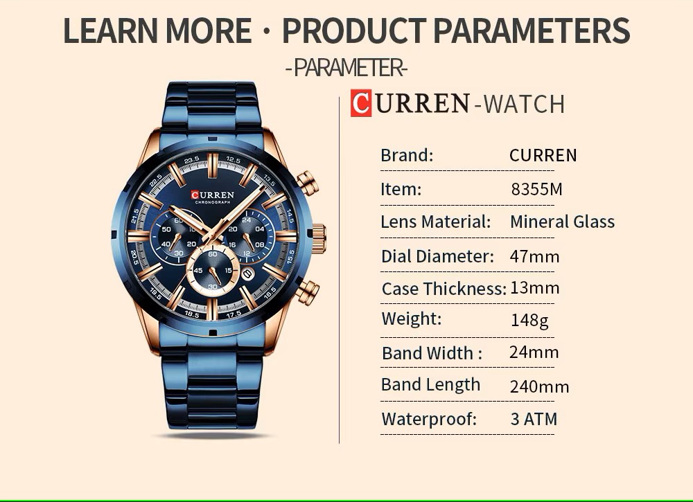 HomeQuartz Watch Curren 8355 Top Quality Business Quartz Man Wrist Watch Big Face Display Your Charm Steel Watches/Blue