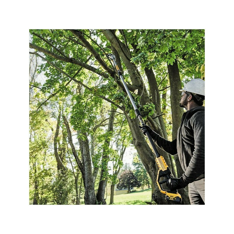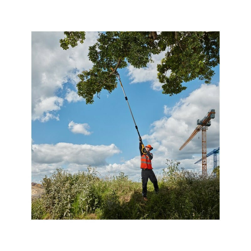 Κονταροπρίονο από τον κατασκευαστή Dewalt με μπαταρία 18V χωρητικότητας 5Ah. Χρησιμοποιείται για περιποίηση και κλάδεμα δέντρων στις περιπτώσεις που απαιτούν πρόσβαση σε μεγάλο ύψος. Μπορεί να καλύψει τις ανάγκες της ερασιτεχνικής και της επαγγελματικής χρήσης λόγω της αυτονομίας σε τροφοδοσία. Έχει τηλεσκοπικό άξονα που παρέχει τη δυνατότητα ρύθμισης του ανάλογα με το ύψος κοπής. Διαθέτει λάμα 20cm και είναι ιδανικό για κλάδεμα κλαδίσκων μικρής διαμέτρου.