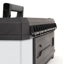 Για μέγιστη ασφάλεια των εργαλείων σας Καινοτόμος οριζόντιος αποθηκευτικός χώρος Ανάγλυφο λογότυπο Μεγάλα μεταλλικά κουμπώματα – Βαρέου τύπου, αντισκωρικά, ανθεκτικά Εργονομική λαβή Ευρύχωρο μεταλλικό σώμα Καπάκι σε σχήμα “V” στο άνω μέρος για ανάγκες κοπής με πριόνι στον χώρο εργασίας Φορητός δίσκος – Για εργαλεία και μικρά εξαρτήματα Επί πλέον αντοχή και μεταφορά βαρέων φορτίων