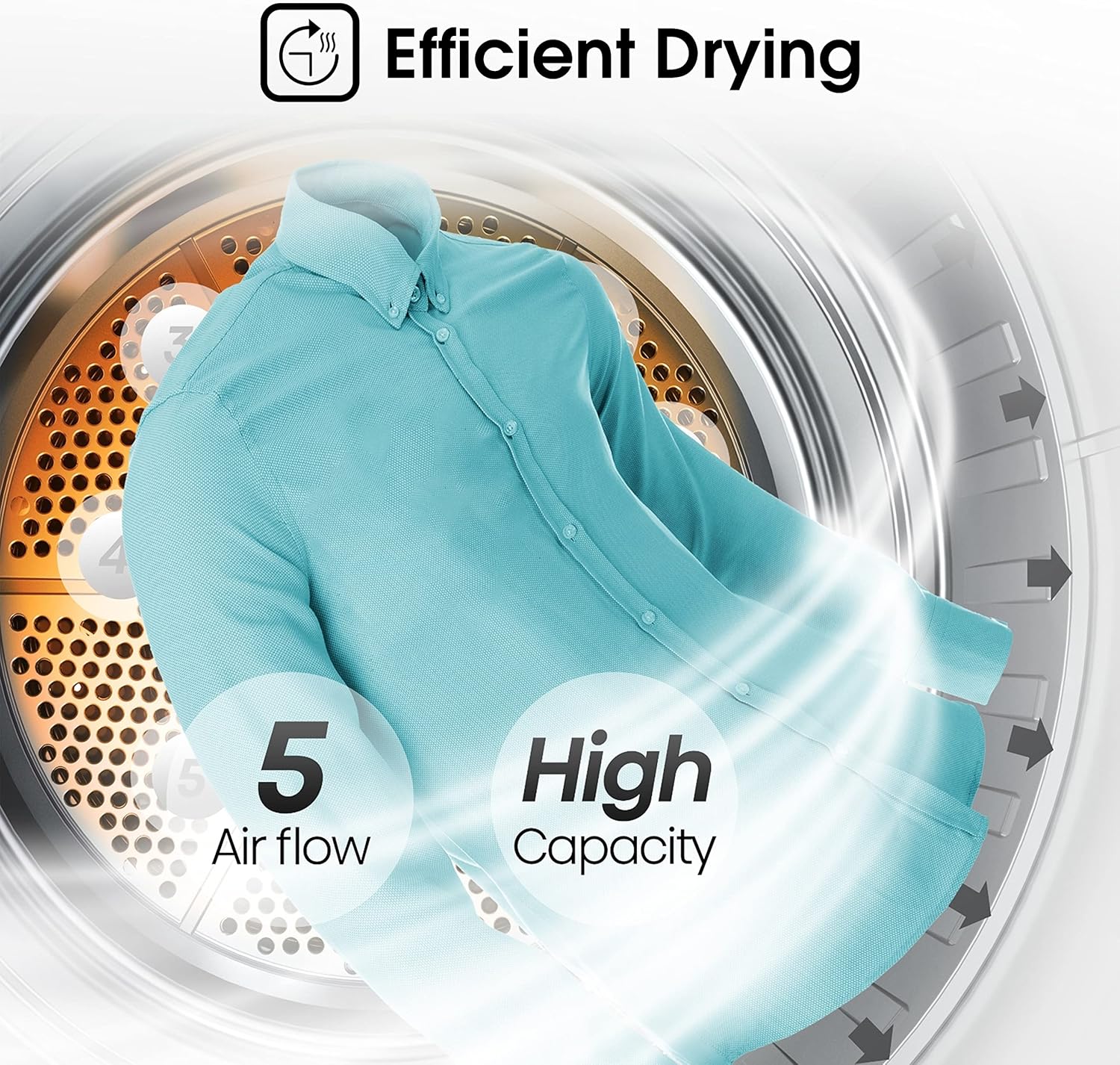 Ακόμα και «γεμάτη» να ήταν η πλύση, το στεγνωτήριό σας μπορεί να ανταποκριθεί μιας και ο κάδος του έχει μεγάλη χωρητικότητα 9kg!