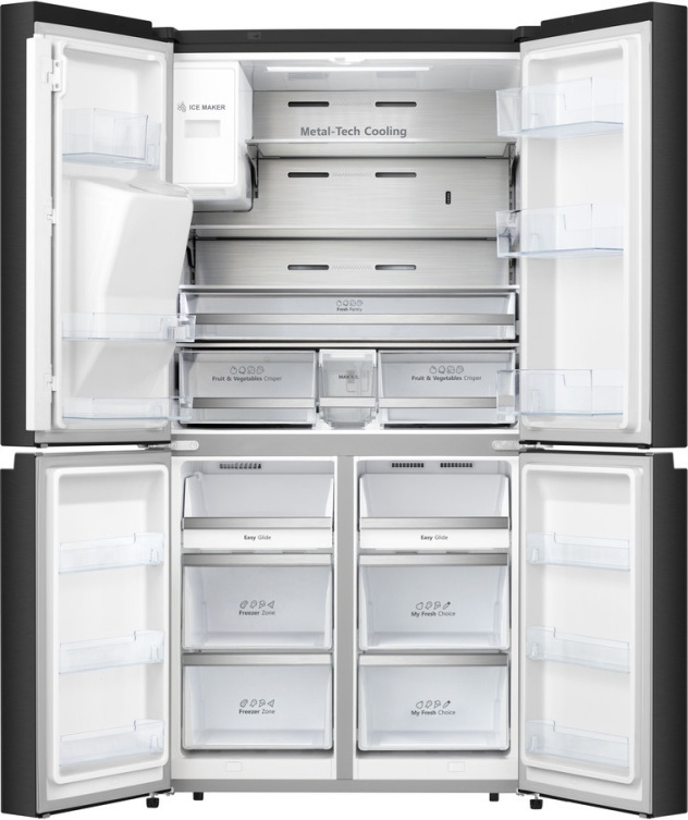 Ψυγείο ντουλάπα RQ760N4AFF από την Hisense μαύρου χρώματος, με τύπο ψύξης Full No Frost και μικτή χωρητικότητα 585lt.
