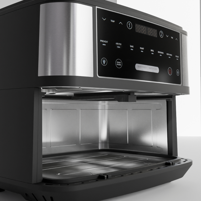 Η φριτέζα αέρος διαθέτει ψηφιακή οθόνη αφής με 8 προεπιλεγμένα προγράμματα. Τοποθέτησε τα υλικά στον κάδο, επίλεξε πρόγραμμα στις 2 ζώνες, ή ρύθμισε τη θερμοκρασία από 80°C έως και 200°C, αλλά και το χρόνο ψησίματος που επιθυμείς, έως 60΄. Αυτό ήταν! Τώρα χαλάρωσε και η ηχητική ειδοποίηση θα σε ενημερώσει όταν τα φαγητά σου είναι έτοιμα!