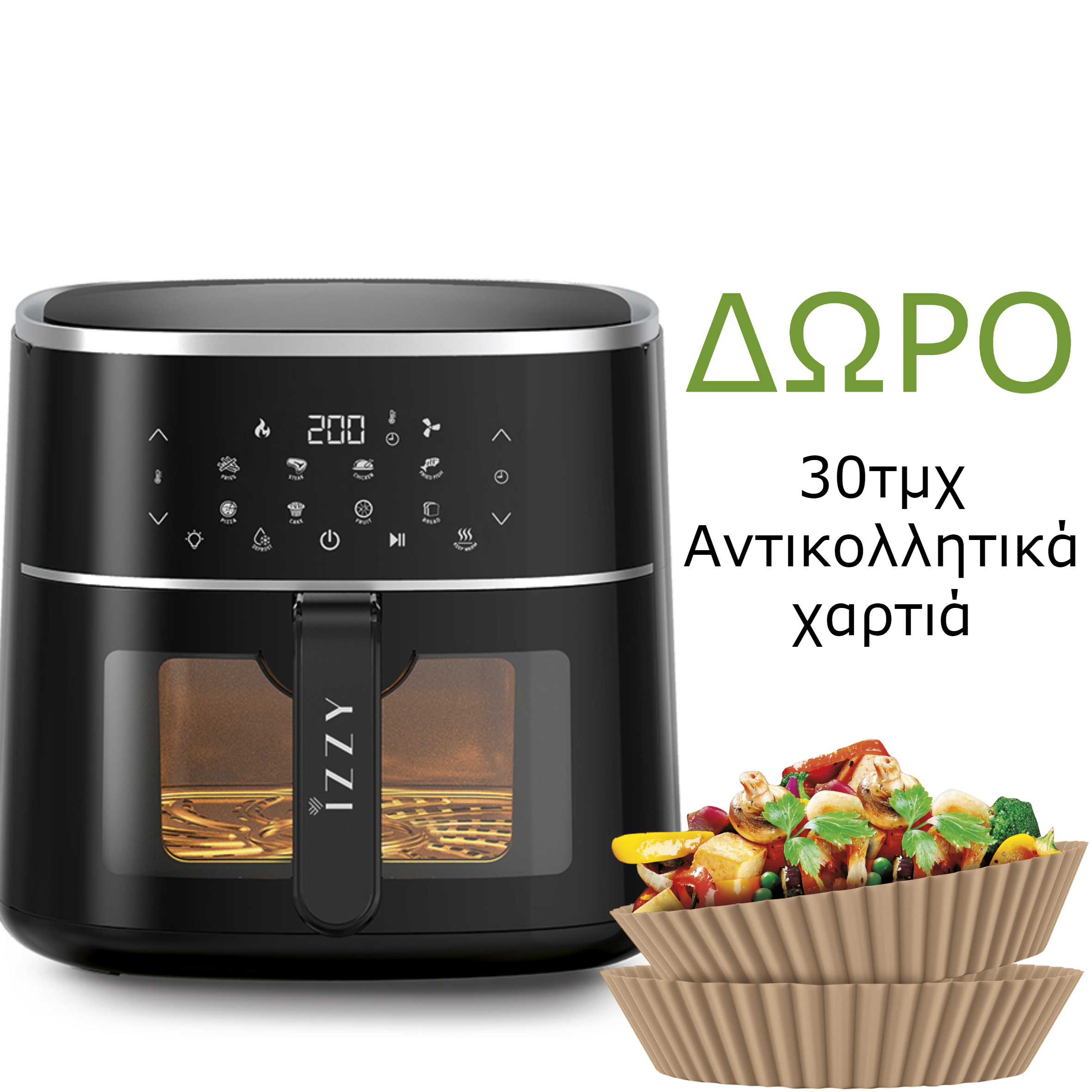 Η φριτέζα αέρος Izzy Digital XL IZ-8218 είναι γρήγορη, ευπροσάρμοστη, συμπαγής και βολική ώστε να μπορείτε να τηγανίζετε με 95% λιγότερο λάδι στον αέρα, να ψήνετε και να θερμαίνετε, ενώ χάρη στην τεχνολογία Food Control μπορείτε να ελέγχετε την πρόοδο του μαγειρέματος χωρίς να ανοίγετε το καλάθι. Ο μοντέρνος σχεδιασμός που ταιριάζει σε κάθε κουζίνα διαθέτει 8 προσαρμόσιμα προγράμματα, ρυθμιζόμενη θερμοκρασία από 80°C – 200°C, εύχρηστη οθόνη αφής όπου εμφανίζει κάθε στάδιο μαγειρέματος καθώς επίσης ο χρόνος προθέρμανσης είναι ελάχιστος. Επιπλέον, ο αντικολλητικός δίσκος μαγειρέματος πλένεται στο πλυντήριο πιάτων, ενώ είναι κατάλληλη για γεύματα 7-8 ατόμων.