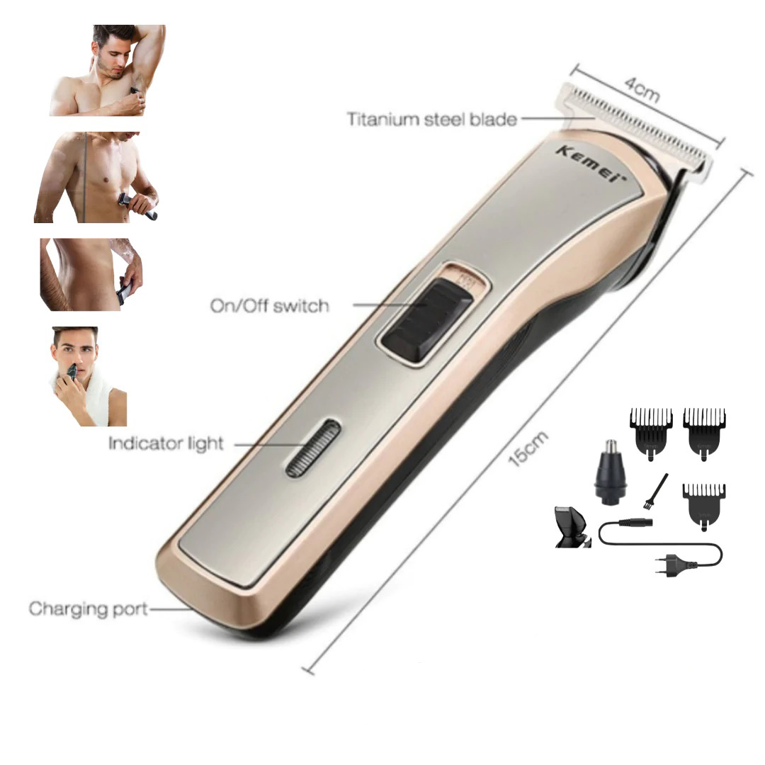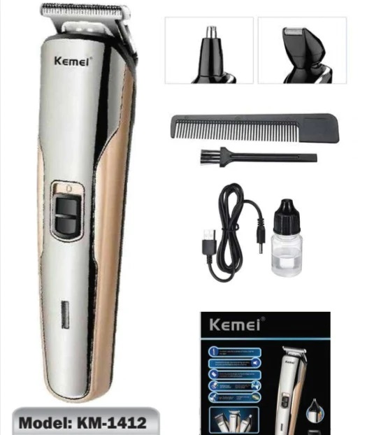 Κουρευτική μηχανή της εταιρίας Kemei, κατάλληλη για χρήση σε περιοχές όπως τα μαλλιά, τα γενιά και το σώμα. Λειτουργεί με μπαταρία, ενώ απαιτούνται 3 ώρες για μια πλήρη φόρτιση, η οποία παρέχει έως και 90 λεπτά αυτονομίας.