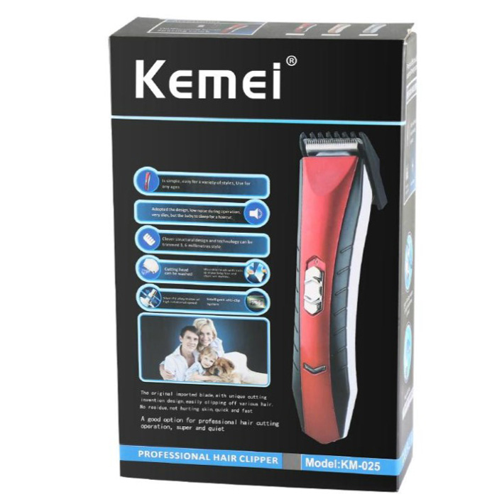 Kemei KM-025 Επαναφορτιζόμενη Κουρευτική Μηχανή Κόκκινη