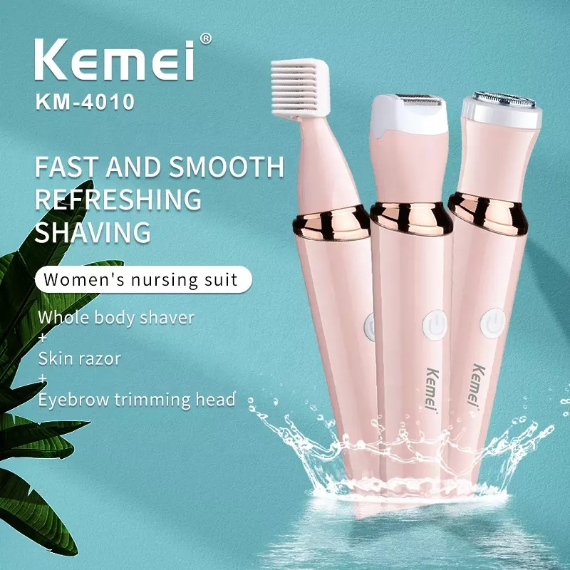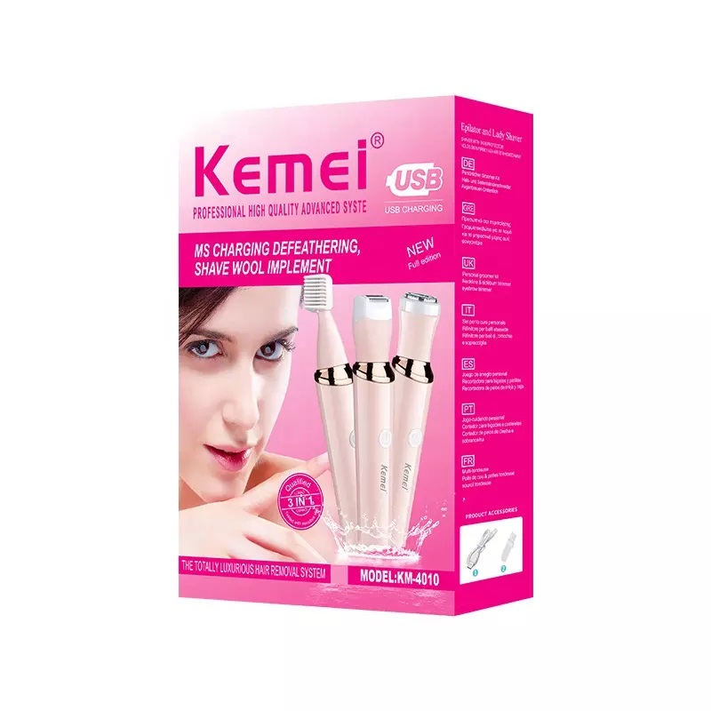 Συσκευή περιποίησης 3 σε 1 Kemei είναι ένα εργαλείο που διαθέτει 3 διαφορετικές κεφαλές και είναι κατάλληλο για απαλό ξύρισμα στην περιοχή του προσώπου, στις μασχάλες, την περιοχή του μπικίνι και τα πόδια. Με επαναφορτιζόμενη μπαταρία και σε πρακτικό μέγεθος για να το πάντα έχετε μαζί σας.