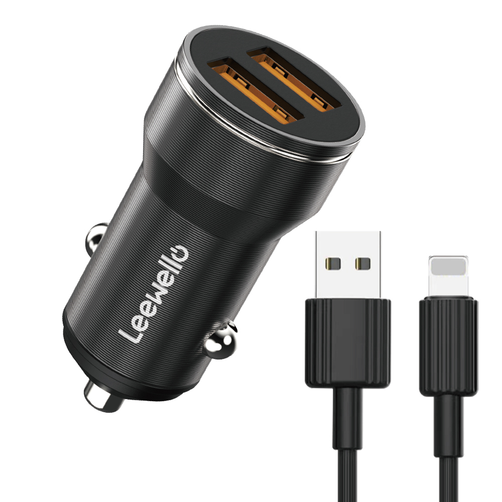 Leewello Φορτιστής Αυτοκινήτου Μαύρος LW-143 Συνολικής Έντασης 2.4A με Θύρες: 2xUSB μαζί με Καλώδιο Lightning