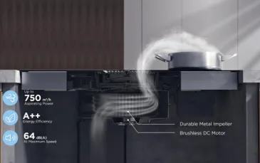 Ισχυρό στην απορρόφηση αλλά χωρίς συμβιβασμούς στην ενεργειακή απόδοση χάρη στον κινητήρα BLDC που εξασφαλίζει ισχυρή ισχύ εξαγωγής έως 750 m3 και επιτυγχάνει Α++ στην ενεργειακή απόδοση. Επιπλέον, διατηρεί χαμηλές εκπομπές θορύβου, ακόμη και στην εντατική ταχύτητα απορρόφησης.
