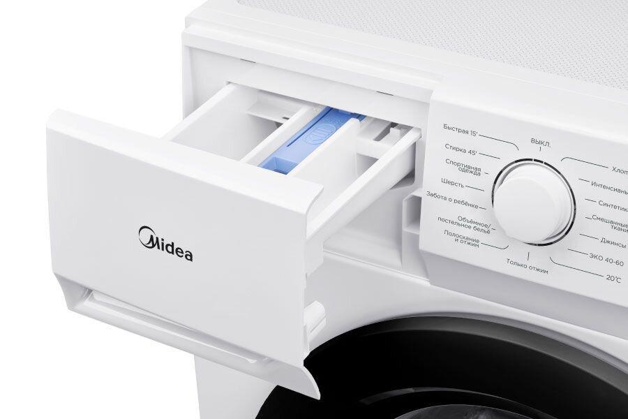Midea Nebula MFN03W60/W χωρητικότητας 7Kg, 1400 στροφών, ενεργειακής κλάσης Ε, με 16 προγράμματα και πρόγραμμα γρήγορης πλύσης 15′, δυνατότητα καθυστέρησης έναρξης και κλείδωμα πίνακα ελέγχου.