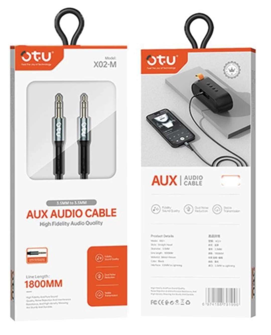 OTU X02-M 1800MM AUX ADAPTER LEAD 1 3.5MM MALE STEREO TO 3.5MM