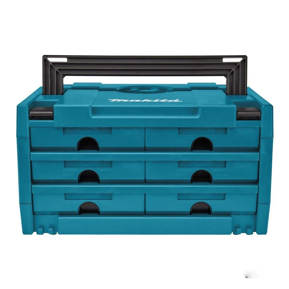 Τα συρτάρια του Makita Makstor κουμπώνουν με ασφάλεια στη θέση τους, ώστε να μην γλιστρούν ακόμα και αν η μεταφορά είναι ανώμαλη. Τα 6 συρτάρια μπορούν να υποδιαιρεθούν περαιτέρω χρησιμοποιώντας τα παρεχόμενα χωρίσματα και να φέρουν ετικέτα από το εξωτερικό. Η σειρά Makstor είναι συμβατή με τις θήκες συστήματος MAKPAC.