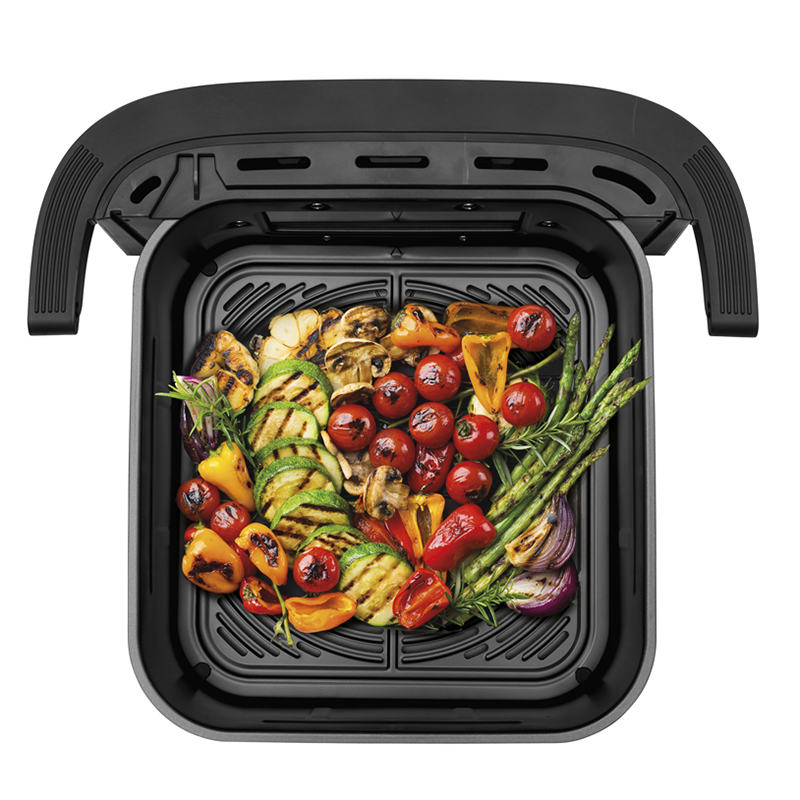 H τεχνολογία Rapid air κυκλοφορεί τον πολύ ζεστό αέρα γύρω από το φαγητό σας, ώστε να μαγειρεύεται ομοιόμορφα και να κλειδώνει την υγρασία δίνοντας στο γεύμα σας ένα νόστιμο τραγανό, χρυσαφί φινίρισμα, χωρίς όλα τα λάδια και τα λίπη. Εξακολουθεί να παγιδεύει τους χυμούς μέσα στην τραγανή επίστρωση, χωρίς το πρόσθετο λίπος, ενώ είναι πιο γρήγορο, καθαρό, υγιεινό και πολύ πιο εύκολο. Ο τέλειος συνεργάτης σας για ζουμερές φτερούγες κοτόπουλου, τραγανές πατάτες, μπουκιές ψητού κουνουπιδιού, σουβλάκια γαρίδας, μίνι πίτσες, αφράτα ρολά κανέλας, μπουκιές brownie και πολλά άλλα.