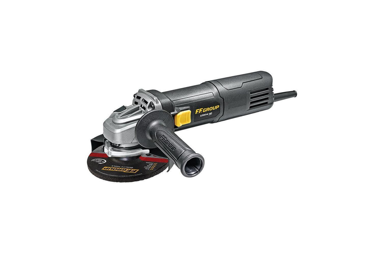 Επαγγελματικός γωνιακός τροχός της FF GROUP με ροοστατικό διακόπτη. Ο κινητήρας 1200 W παρέχει τη δυνατότητα εύκολης κοπής μεταλλικών σωλήνων, διάνοιξη καναλιών σε τούβλα, τρίψιμο μαρμάρων κ.ά. Ο προφυλακτήρας γρήγορης απελευθέρωσης, τα γρανάζια ακριβείας και ο μηχανισμός εύκολης αλλαγής ψηκτρών, προσφέρουν επιπλέον ταχύτητα και εργονομία.