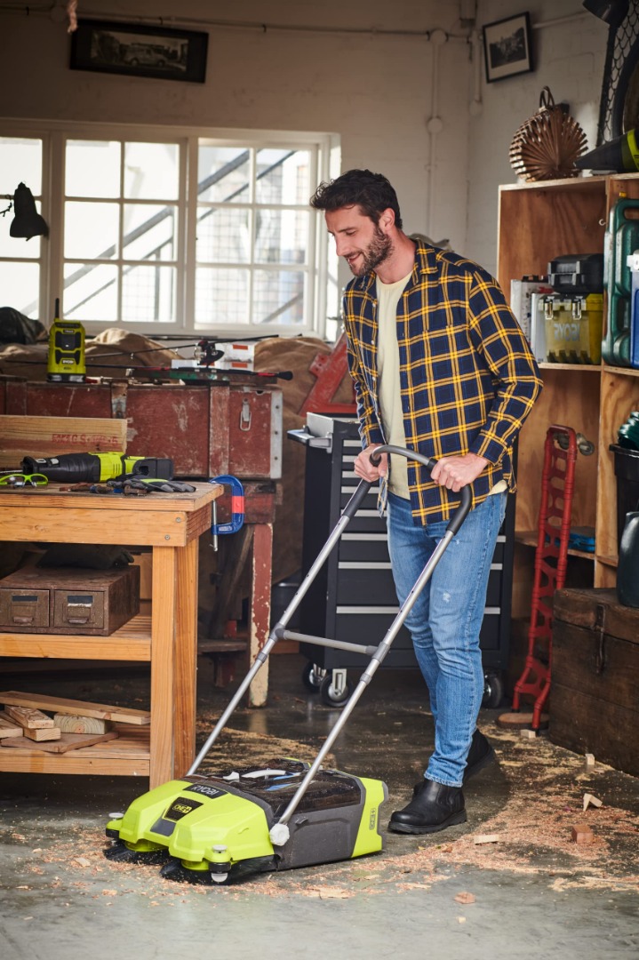 Διατηρήστε τα δάπεδα του συνεργείου και του γκαράζ σας καθαρά με το μηχανοκίνητο σάρωθρο RYOBI 18V ONE+
