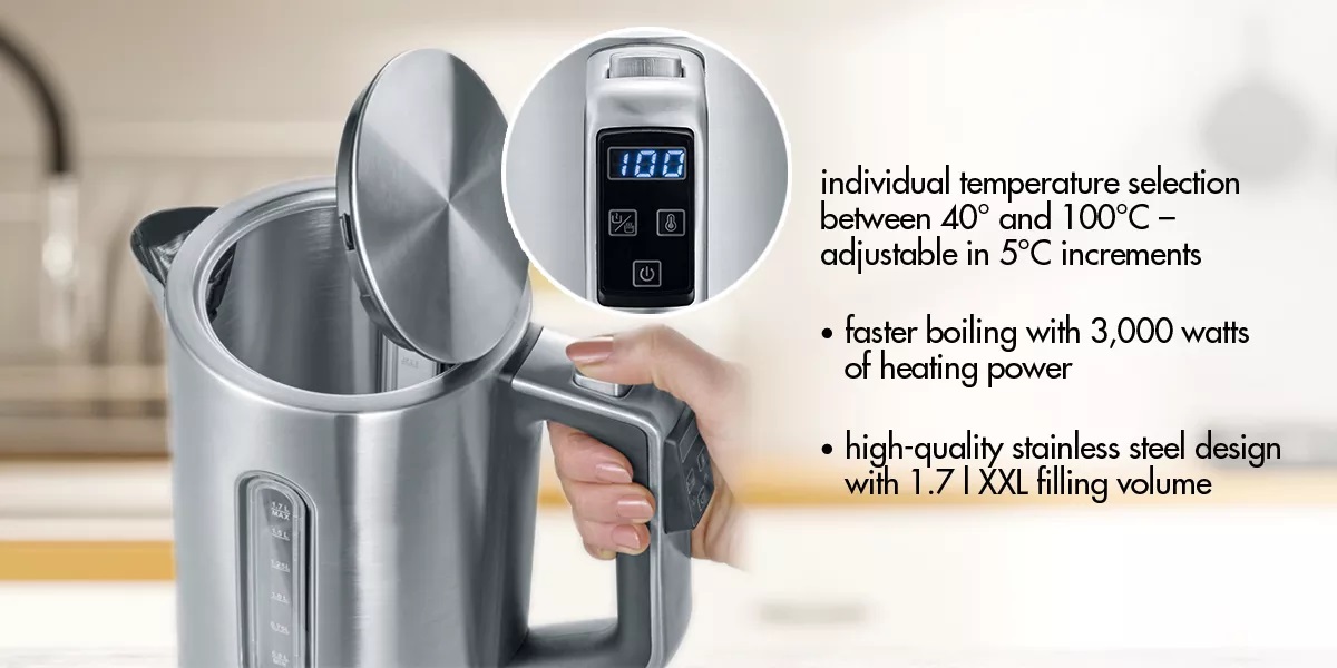 · High-quality stainless steel design with 1.7 l XXL filling volume