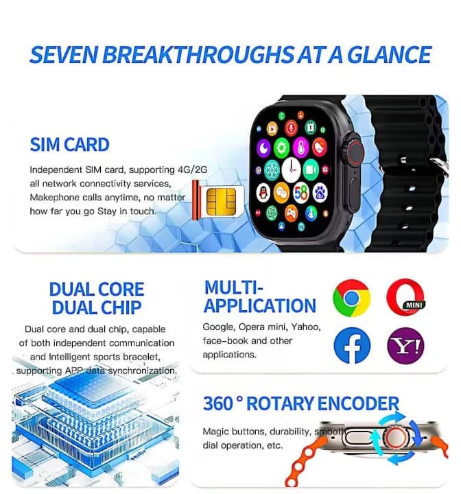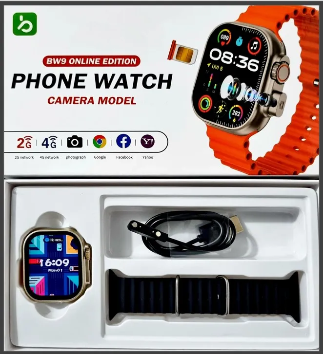 Αυτό το BW9 Ultra είναι ένα έξυπνο ρολόι που υποστηρίζει μια κάρτα SIM 4G και μια κρυφή κάμερα HD με μπροστινό κουμπί.