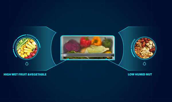 Τα επίπεδα υγρασίας του συρταριού μπορούν να ρυθμιστούν σε υψηλό, μεσαίο ή χαμηλό επίπεδο: Η ρύθμιση της υγρασίας ανάλογα με τους διαφορετικούς τύπους φαγητού σας επιτρέπει να διατηρήσετε τη φρεσκάδα του φαγητού. Υψηλή: ιδανική για την αποθήκευση λαχανικών που είναι εύκολο να αφυδατωθούν. Μεσαίο: εξαιρετικό για την αποθήκευση φρούτων. Χαμηλή: κατάλληλη για την αποθήκευση αποξηραμένων φρούτων και αυγών, τα οποία απαιτούν χαμηλή υγρασία.